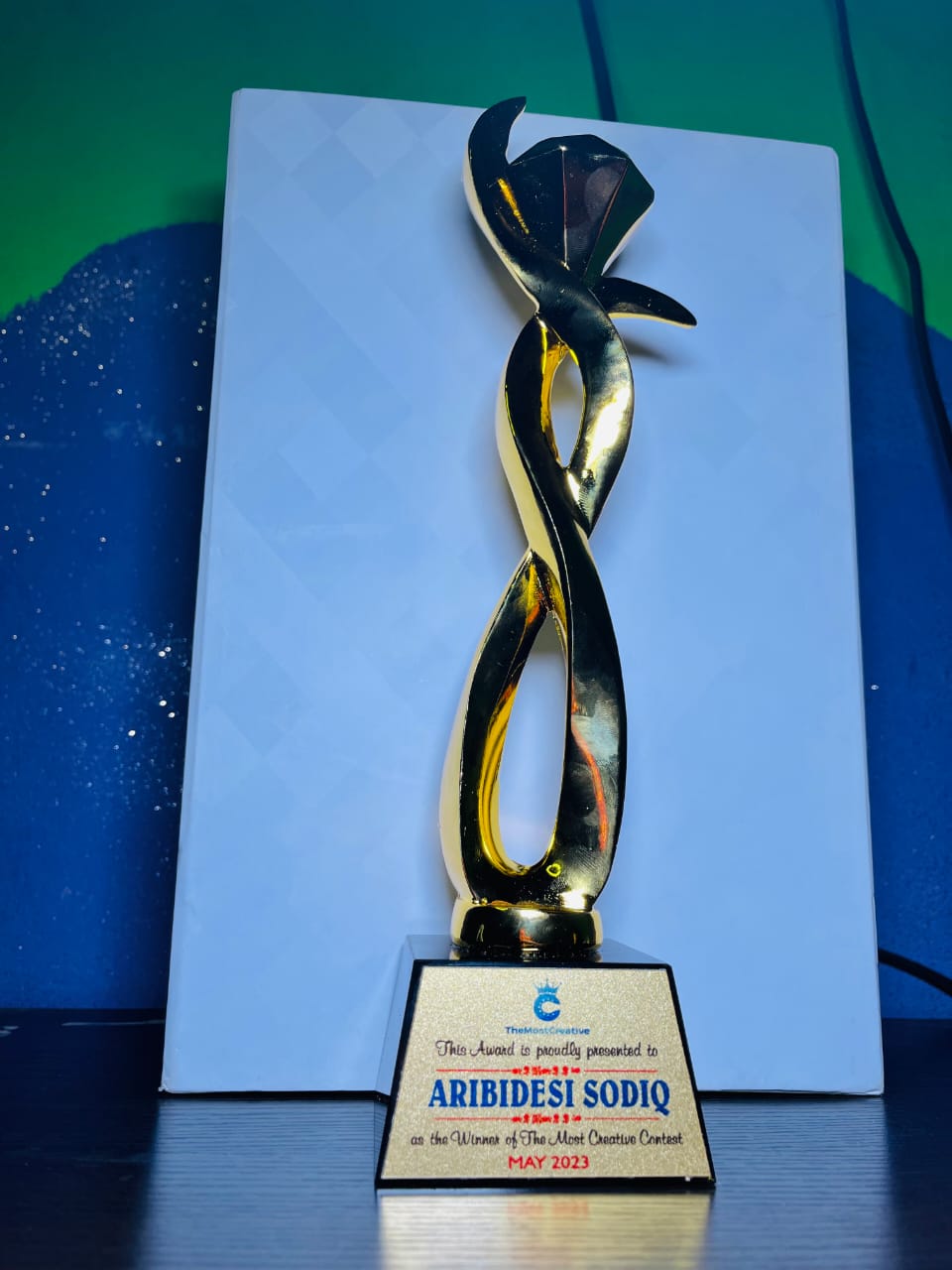 Here is the award plaque we sent to Aribidesi Sodiq