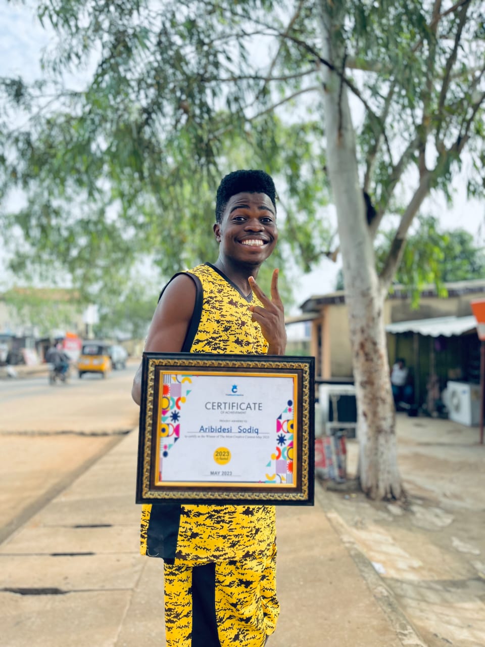 Here is a video of Aribidesi Sodiq holding his certificate of achievement