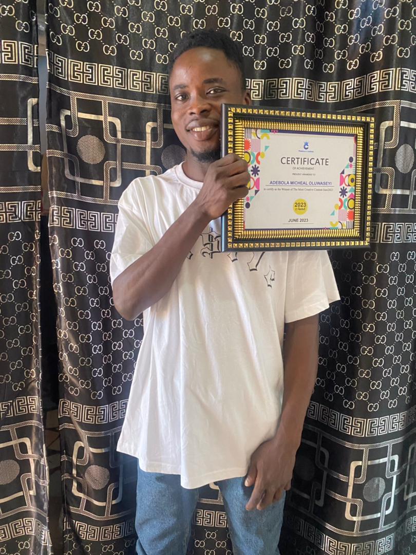 We say a big congratulations to Adebola Michael Oluwaseyi for emerging as the Winner of the 5th Edition - The Most Creative Contest