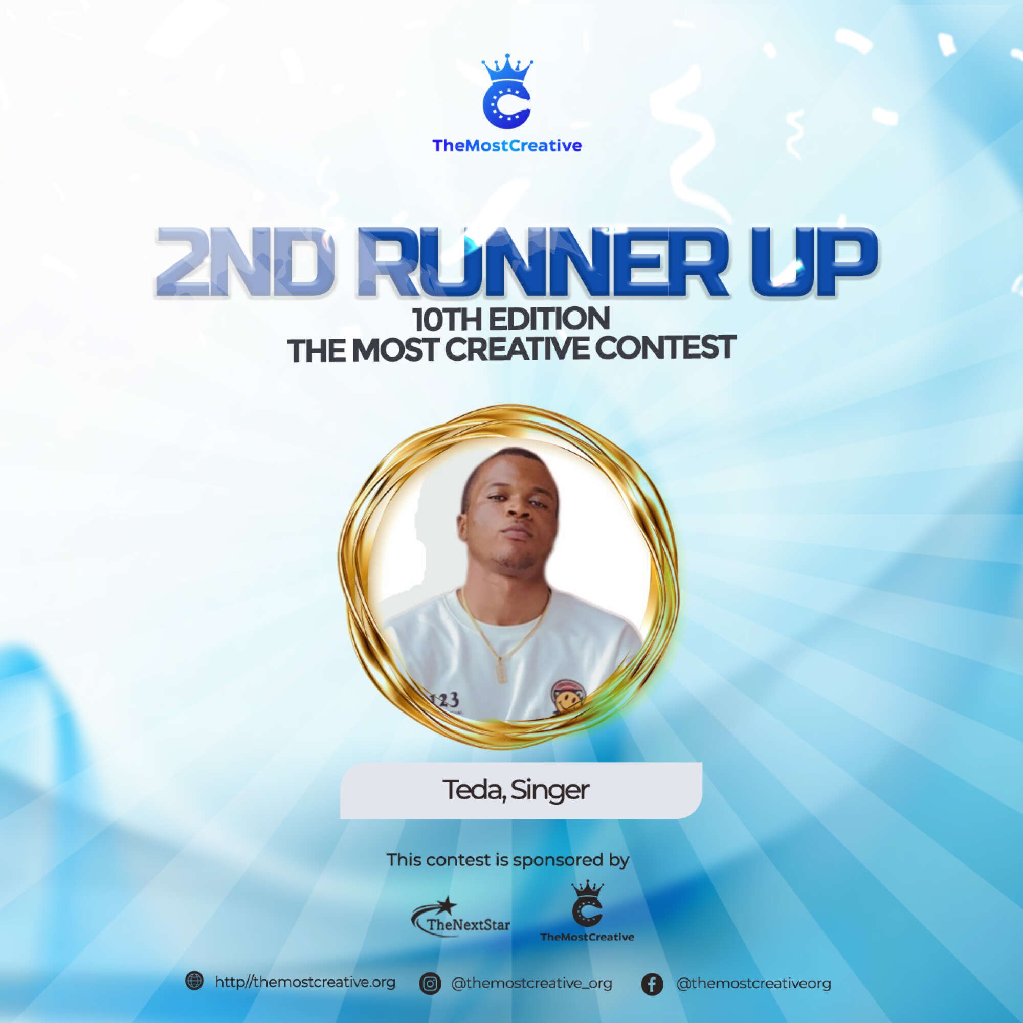 We say a big congratulations to Teda for emerging as the 2nd Runner Up of the 10th Edition - The Most Creative Contest