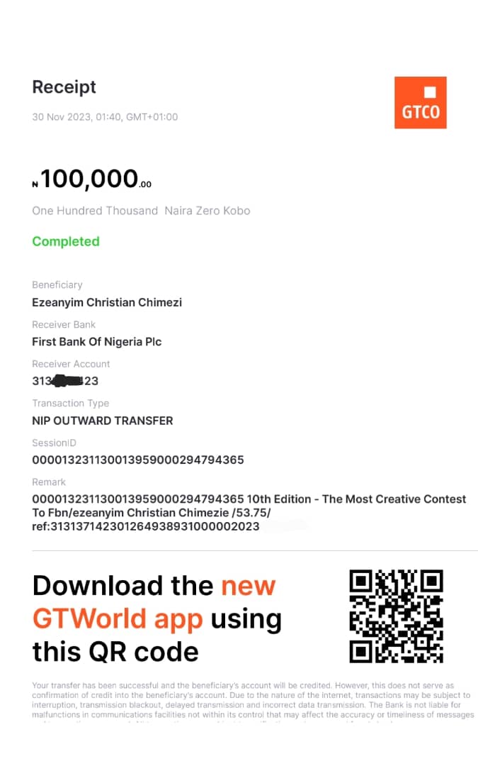 We say a big congratulations to Kiszy Henry for emerging as the 1st Runner Up of the 10th Edition - The Most Creative Contest