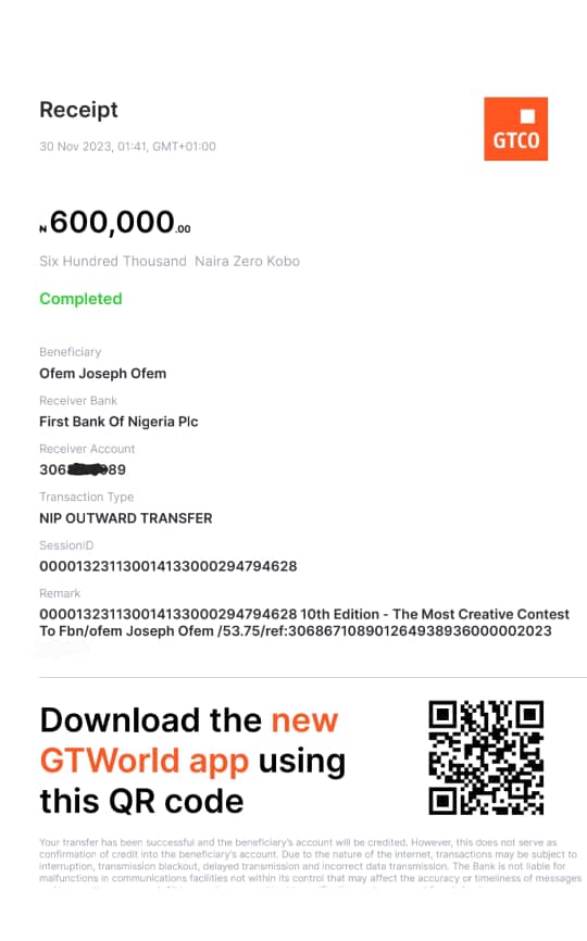 It is also important to note that despite Unor Melvin being denied the prize money, he received a consolation prize of N100,000.